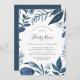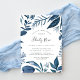 Notre élégante invitation à la douche nuptiale Wild Azure comprend vos détails de douche nuptiale dans bloc noir et écriture calligraphie, encadrée par le feuillage aquarelle peint dans des tons bleus glacés d'hiver.