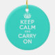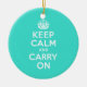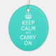Azure and Turquoise Keep Calm and Carry On Ceramic Ornament