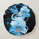 Azure Bloom Elegance Round Pillow