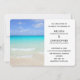 A tropical themed beach wedding invitation. The background image is a white sandy beach with gentle waves and a vivid ocean view of crystal clear turquoise waters. Bright blue sky and soft fluffy clouds overlook this dreamy tropical caribbean vacation spot. Tranquil and secluded, the perfect spot for a wedding celebration.
