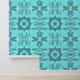 Embrace the charm of the Azure Geometry Wallpaper! 🌟💙 The striking blue and white pattern adds a fresh vibe, while the wooden table brings a cozy touch. Perfect for those who appreciate style and comfort!