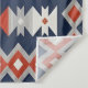 A striking Southwestern pattern featuring a central diamond motif and intricate step-pyramid borders in terracotta, gold, and cream. This high-contrast design on deep navy is perfect for modern cabin upholstery, statement floor rugs, and rustic-chic wallpaper.