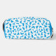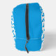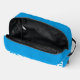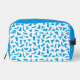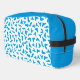 Discover our stylish toiletry bag featuring a playful, abstract pattern on a crisp white background. Bright azure, rounded shapes—ranging from triangles to blob-like forms—are scattered densely yet distinctly across the design. Perfect for organizing your essentials with a fun, modern touch.