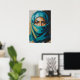 This captivating abstract expressionist portrait is a vibrant celebration of female strength and cultural beauty. The subject, a woman with piercing blue eyes, is framed by a dynamically rendered head covering that flows with rich textures and bold, confident brushstrokes.