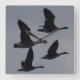 Canadian Geese in Flight Clock. This photograph is of a small flock or gaggle of canadian geese in flight silhouetted against the grey winter sky.