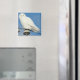 Snowy Owl Magnet. In my opinion the most beautiful of all the raptors, the snowy owl. Framed by a cold blue winter sky this magnificent predatory bird armed with it's huge talons looks for prey from a power pole.