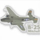 A detailed vector drawing featuring the B-25 Mitchell, a WW2 US Air Force medium bomber, flying over the enemy territory, prepared to attack.