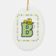 An adorable bee flies around a green letter B on an ornament