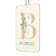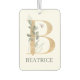 Letter B monogram floral. Letter B in golden brown texture accented with green watercolor compound leaves and berries and gold dust. Personalized with name in matching font.