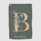 Letter B monogram floral. Letter B in golden brown texture accented with green watercolor compound leaves and berries and gold dust. Personalized with name in matching font.