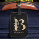 Letter B monogram floral. Letter B in golden brown texture accented with green watercolor compound leaves and berries and gold dust. Personalized with name in matching font.