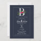 B Monogram Last Initial Modern Blue Floral Wedding Invitation