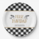 B&W Buffalo Check FELIZ NAVIDAD Personalized Paper Plate