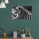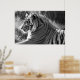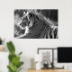 Black and white photo of a tiger. Printed on canvas and framed prints, posters, stickers, key chains and more. Makes an awesome gift!