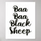 Baa Baa Black Sheep Poster in black glitter , 8x10 inches in high resolution matte print. Great for a kid's room, nursery, and preschool or kindergarten classroom. NOTE: Glitter is simulated.