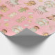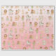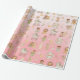 Baby wrapping paper featuring watercolor-painted international babies with animals, prams, bottles, rubber ducks, blocks and stuffed animals on a pink ombre background.