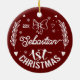 Custom baby 1st Christmas home decor. A tree ornament for your baby first Christmas with a rich red background on one side and winter flowers on the other. The perfect memory for years to come! This is one of a personalized christmas ornaments I have in my store, check it for other cute Christmas ornaments celebrating your baby first Christmas.