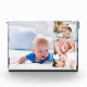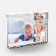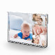 Create your own unique baby photo block. The photo template is set up ready for you to add 4 of your favourite pictures which will automatically display as one main background photo in landscape format, with the remaining 3 photos overlaid in a zigzag montage. The design has narrow white photo frames.