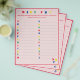 Design features a pale pink background to a bright red border and text. "BABY ABC" is displayed at top in bright colours. Directions are customizable for a more personalized touch, if desired. Guests are asked to list baby items beginning with the letter shown. Also available in blue. Designed to coordinate with the "ABC Baby Shower and Nursery Collection."
