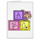 An adorable baby girl and three alphabet blocks on Baby ABC Tshirts,mugs, cards, stickers, tote bags, bodysuits, postage stamps, and other items.