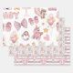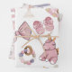 Cute baby themed patterns with elephants, teddy bears and unicorns, baby goods and hot air balloons for girl baby shower gift wrap.