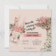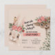 Cute baby bunny and deer with flower wreaths on their heads. The background is pale pink. The name of the future mother is on a pink bow