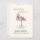 Baby announcement featuring watercolor flamingo