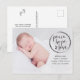 Personalize this postcard with your baby's image, creating a charming and unforgettable introduction. Add essential details like name, weight, height, and birthdate, along with a special greeting to share your joy with friends and family. This level of customization turns the postcard into a treasured keepsake for both the sender and the receiver.