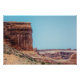 A landscape photograph of an arch forming in an opening of a plateau in the desert of Utah. The sky is clear of clouds and is a soft blue. The stones and sands are hues of orange-browns to beige. A few green shrubs are scattered along the edges of the formations. Image Copyright ©2024 Kimberly J Tilley. zazzle.com/store/developingnature