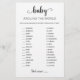Purchase this game and enjoy high quality monochrome black and white Baby Around the World card for your event! Match each language with correct translation of "Baby"! Baby Shower Activities! Gender Neutral Black and white design.