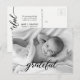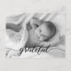 Personalized with baby's photo on the front and special message on the back. This design uses the word "Grateful" in an elegant script hand-lettering style font for a touch of sophistication. Express your excitement in announcing the birth of your child and send your gratitude at the same time.