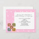 This precious baby shower invitation is a wonderful way to invite your guests to join you in celebrating your new arrival. This design has a pink background with a stack of blocks in the lower left corner. Your party details go below centred and are completely customizable. Just add your Shower details and you are ready to go!