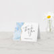 This elegant modern wedding thank you card features a baby blue watercolor agate border trimmed with faux gold glitter. The customizable text combines the words "Thank You" in charcoal grey handwriting script and the names of the bride and groom in italic font on a white background.