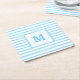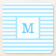 Baby Blue and White Stripes Custom Monogram Square Paper Coaster