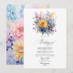 This wedding invitation features a delicate blend of baby blue, buttercream yellow, and pastel pink florals, creating an ethereal and romantic design. The soft pastel hues bring a timeless elegance, perfect for couples seeking a subtle yet sophisticated touch for their special day. The intricate floral patterns add a charming and whimsical feel, making this invitation an ideal choice for a spring or summer wedding.