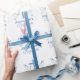 Baby Blue Custom Name Baptism with Cross and Doves Wrapping Paper