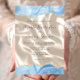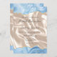 The top and bottom edges of this elegant modern wedding invitation feature a pastel baby blue watercolor agate border trimmed with faux gold glitter. The customizable text combines handwriting, sans serif and italic fonts in charcoal grey on a background image of ivory silk. The reverse side features a matching baby blue agate and ivory silk design.