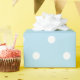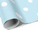 This gift wrapping paper features a cute and simple polka dots design. A pattern of white polka dots is printed across a soft baby blue coloured background. The classic and elegant design is perfect for a baby shower, birthday, or other special event.