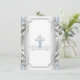 Baby Blue Silver Cross Boy Baptism Christening Invitation