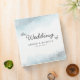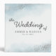 Elegant wedding photo album binder featuring baby blue watercolor ombre clouds with silver glitter. It says "the wedding of" at the top of the cover. Customize this product by adding your names and event date. The default title on the spine says "MEMORIES" and the event date at the bottom. Theses texts are editable as well. Whimsical and modern design.