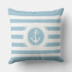 Baby Blue & White Stripes Nautical Anchor Throw Pillow