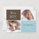 Baby Boy announcement with a chic colour block design in blue and brown. Upload your photos in the space provided, and enter your baby's info.
