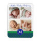 Cute personalized birth keepsake. Featuring four of your favourite photos. Personalize it with baby's name and monogram. Dark green and navy blue stripes pattern.