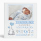 Baby Boy Birth Stats Blue Grey Keepsake PHOTO Binder