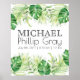 Baby Boy Birth Stats Tropical Green Palms Poster