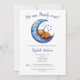 Cute and adorable Blue Moon with sleeping baby bear baby boy themed baby shower invitation. We can Bearly wait! Add your own details to the invitation template. Available as printed or digital download.