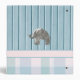 Grande image d'éléphant en feutre sur bleu, arrière - plan en bois au sommet avec plaid bleu/vert/rose clair au fond. Image d'éléphant métallique sur le dos. Des modèles vous ont permis de customiser.
