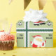 Soccer Christmas design featuring cute Santa Claus going kicking a fubol. Edit text to add name.