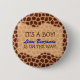 This button displays a giraffe print background along with the text "It's a boy! [Baby's Name] is on the way!" This is a great item for giraffe themed, animal themed, safari themed, zoo themed, or jungle themed baby showers..