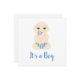 This baby shower invitation for baby boy has a modern and fun design with a baby boy illustration in blue shades.